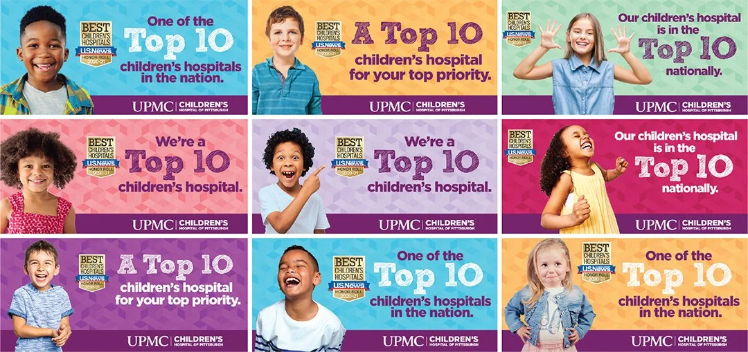 Alongside the refresh, I led multi-channel campaign work across social, digital, and broadcast—concepting copy, designing assets, and directing video for both social and TV spots. One highlight was the Top 10 Children’s Hospital campaign celebrating the hospital’s national ranking: the digital and social components drove a 25% increase in landing page traffic, helping boost community pride and visibility around the hospital’s accomplishments.